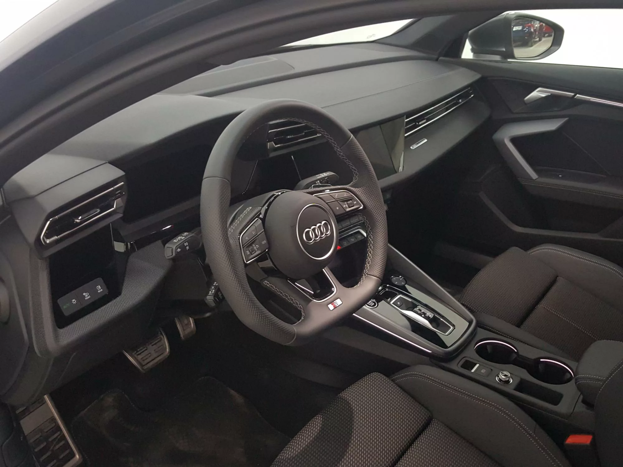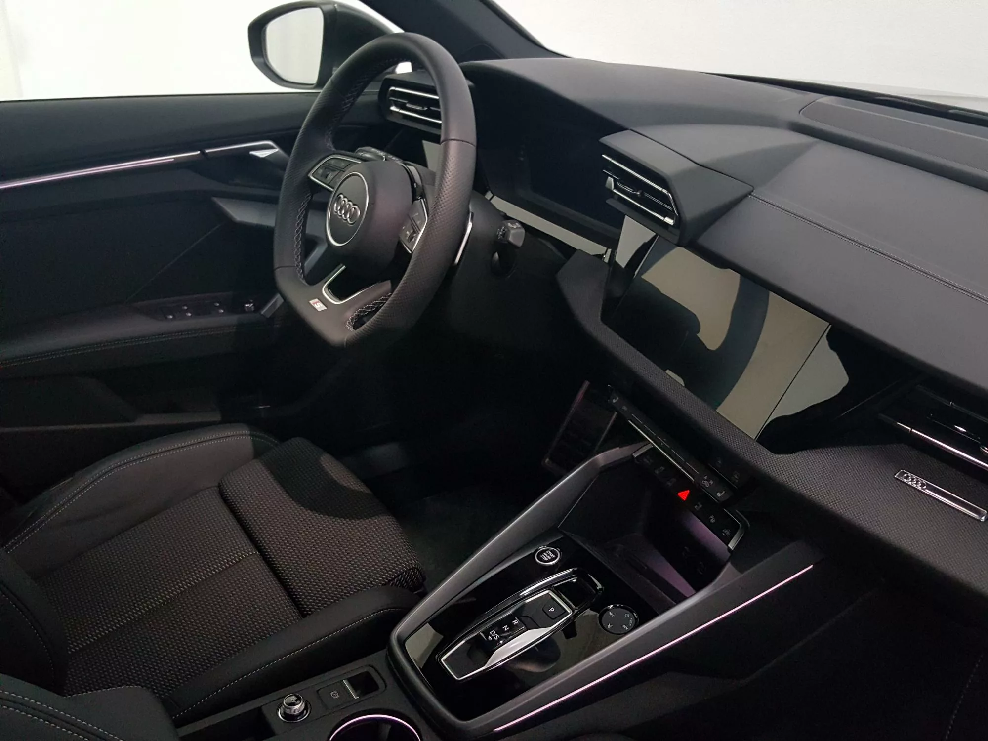 Este modelo no solo resalta por su diseño y rendimiento, sino también por su completo equipamiento de serie. Desde el **sistema de aparcamiento asistido Audi parking system plus**, hasta el **freno de estacionamiento electromecánico** y el **ESP**, el A3 asegura seguridad y facilidad de manejo en cada recorrido. El equipo de audio con 6 altavoces pasivos y el paquete de iluminación ambiente plus crean un espacio envolvente que redefine la experiencia de conducción.