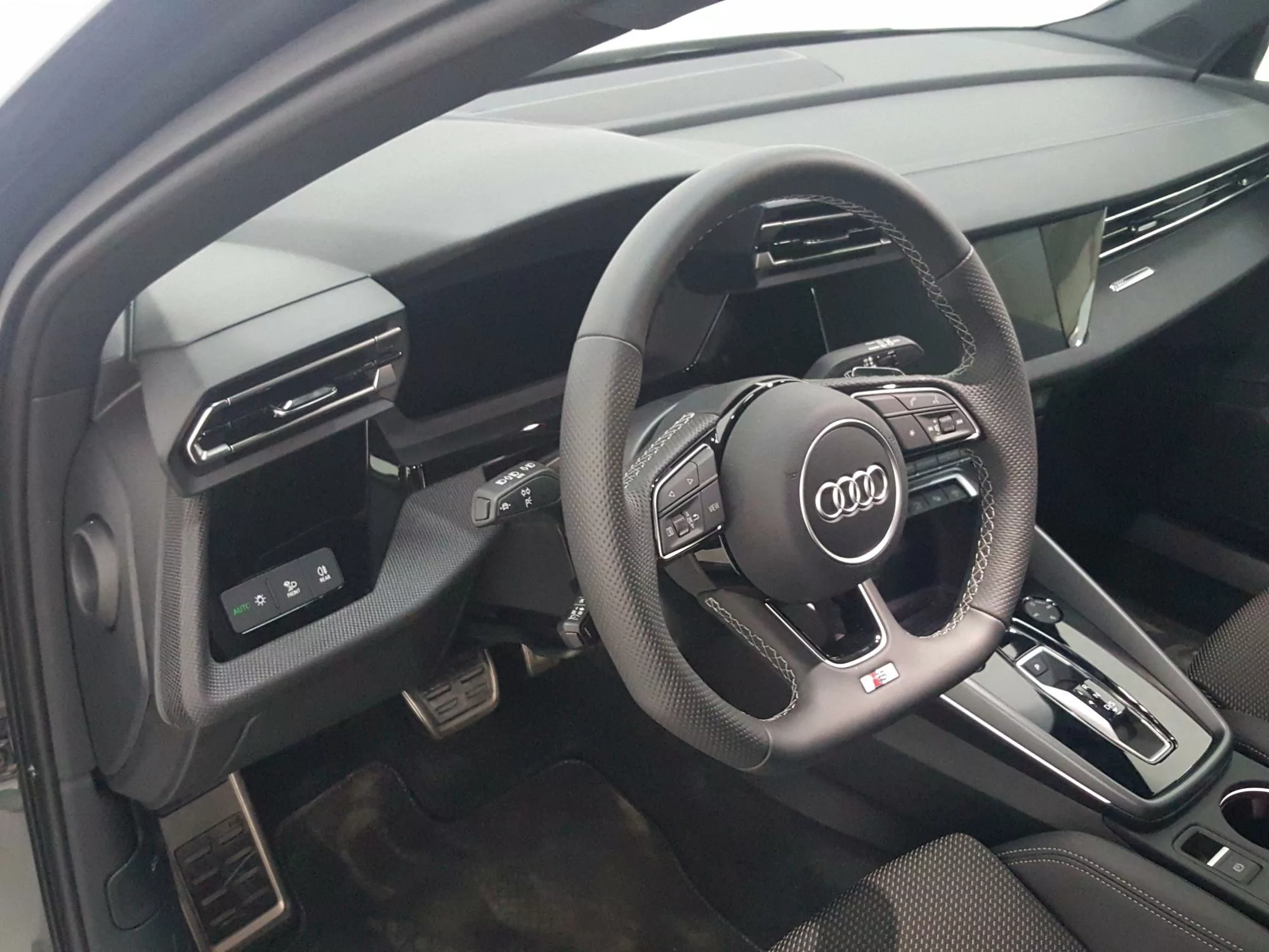 El interior del Audi A3 Sportback es un santuario de confort y tecnología. Los asientos delanteros deportivos, junto con un climatizador automático de 1 zona, ofrecen un nivel de confort excepcional. El **volante multifunción** con diseño de 3 radios y levas de cambio, comparte protagonismo con el **Audi virtual cockpit**, que proporciona toda la información necesaria al conductor de manera intuitiva. La conectividad está garantizada gracias a la **Smartphone Interface** y conexiones USB traseras, lo que permite estar siempre conectado incluso en los viajes más largos.
