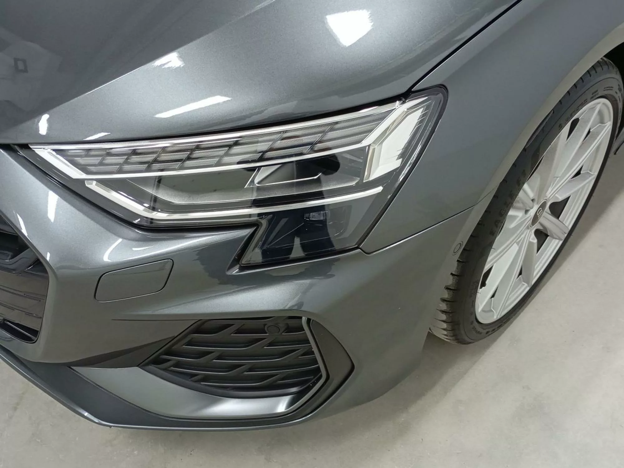 La estética de este modelo está acentuada por su pintura metalizada Amarillo Python y las llantas de aleación ligera de 18 pulgadas que añaden un toque distintivo. El paquete exterior S line mejora significativamente su atractivo deportivo, mientras que la rejilla del Audi Single Frame pintada en negro titano realza su imagen deportiva.