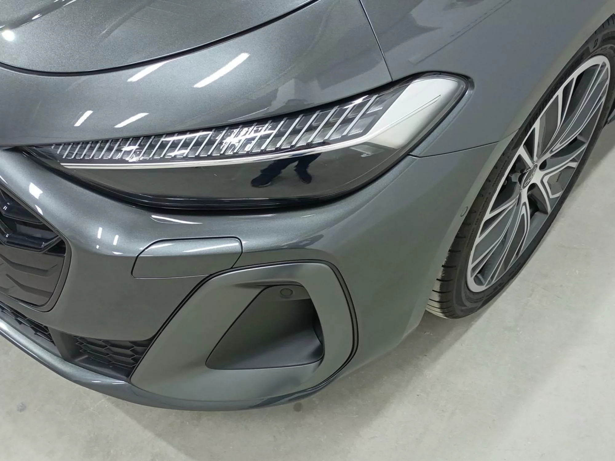 El exterior del Audi A5 se caracteriza por su **llanta de aleación ligera de 19"** con un diseño en "Aero" de cinco brazos, y la pintura sólida en **Blanco Arkona** que exuda elegancia. Los **grupos ópticos traseros LED Pro** y los faros **LED Plus** no solo ofrecen una estética moderna, sino también una visibilidad excepcional, gracias a sus funciones de luz de viraje y curva estática. La parrilla en negro fantasma y las taloneras anchas, junto con la óptica de aluminio, crean una silueta imponente que no pasa desapercibida en la carretera.