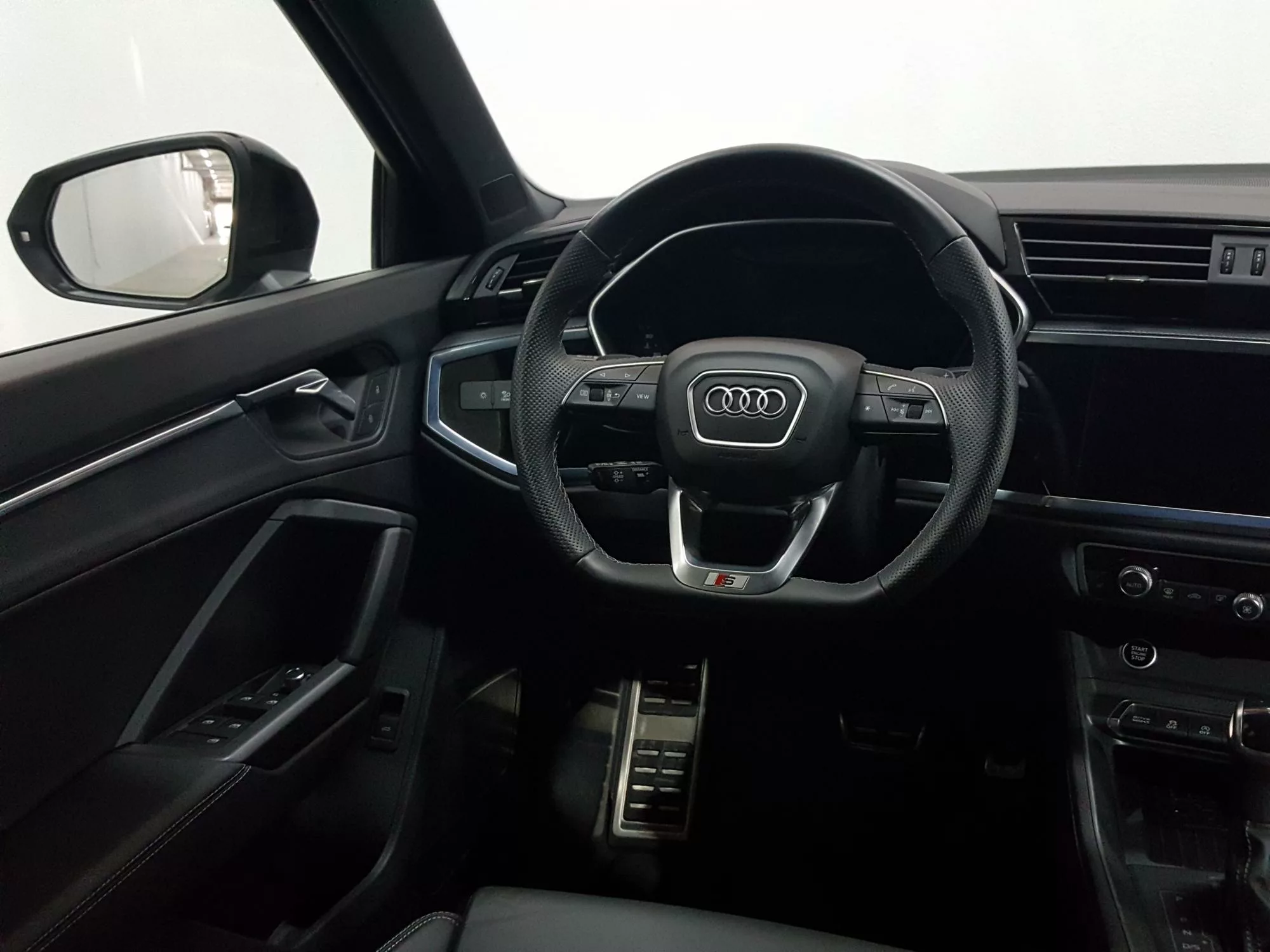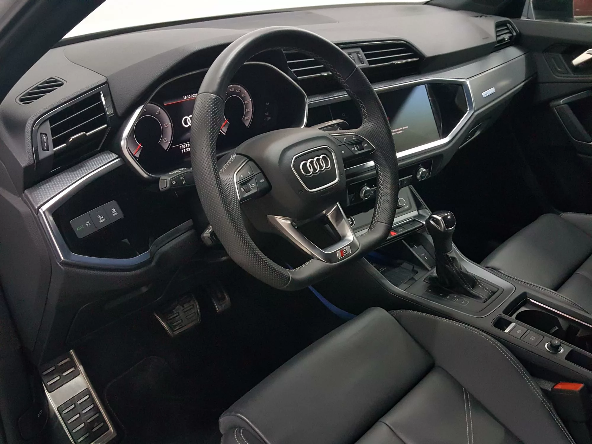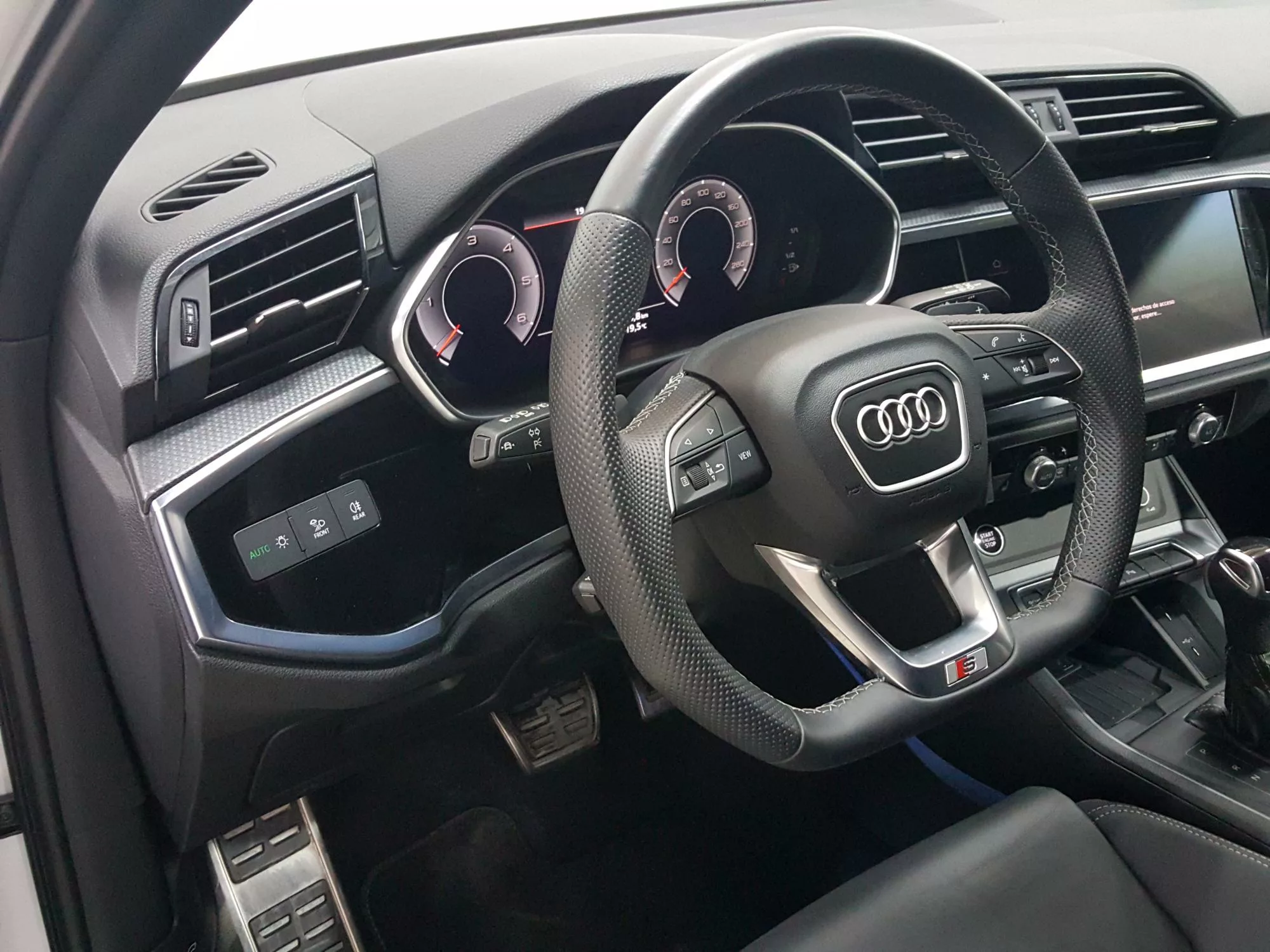 Este SUV no solo brilla por su exterior, sino también por su interior lleno de equipamiento de serie de alta gama. Los asientos delanteros deportivos, tapizados en **Alcantara**, brindan un soporte excepcional mientras que el **salpicadero en óptica Black Panel** y el **volante deportivo de cuero** aseguran un ambiente sofisticado. Equipado con el **Audi Virtual Cockpit Plus**, el conductor podrá disfrutar de una visualización clara y moderna de información relevante, incluyendo navegación y entretenimiento.