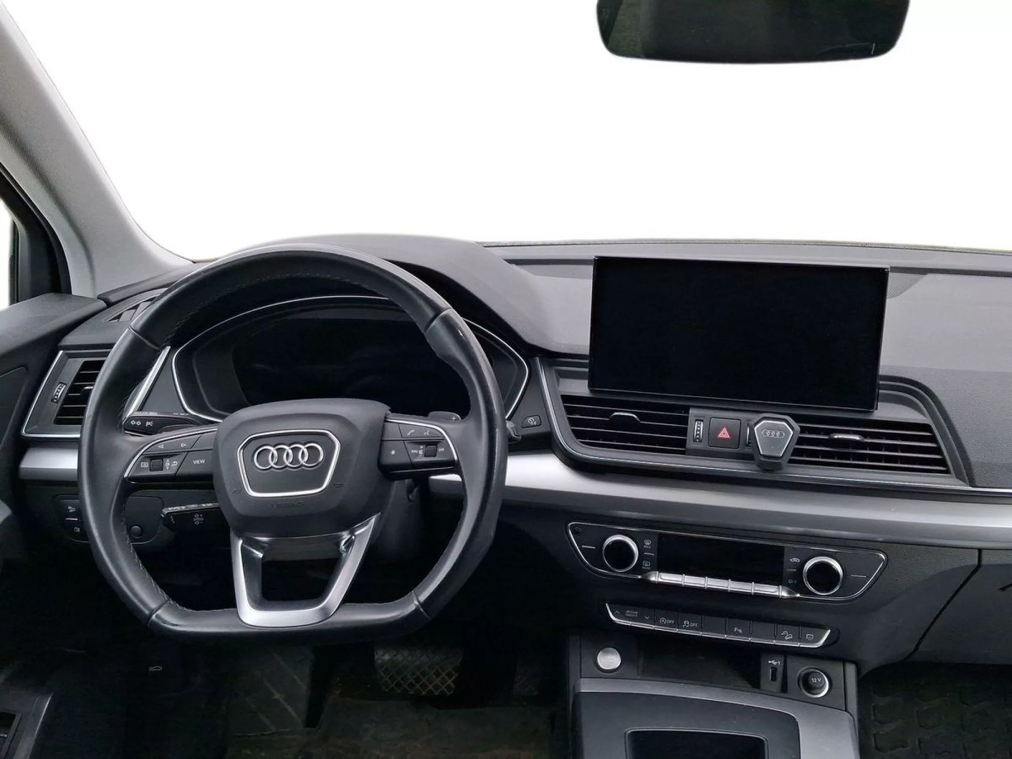El Audi Q5 35 TDI ofrece un espacio interior que combina elegancia y tecnología. El **Audi Virtual Cockpit Plus** permite elegir entre diferentes modos de visualización, ofreciendo toda la información relevante al conductor en una pantalla digital de alta resolución. Con un **climatizador de confort de 4 zonas**, cada ocupante puede personalizar su nivel de confort y asegurar que el viaje sea placentero en todo momento. Además, cuenta con un **sistema de sonido de 8 altavoces** que garantiza una experiencia auditiva impresionante. La **tapicería en tela Synonim** y los asientos delanteros ajustables manualmente añaden comodidad sin sacrificar el estilo.
