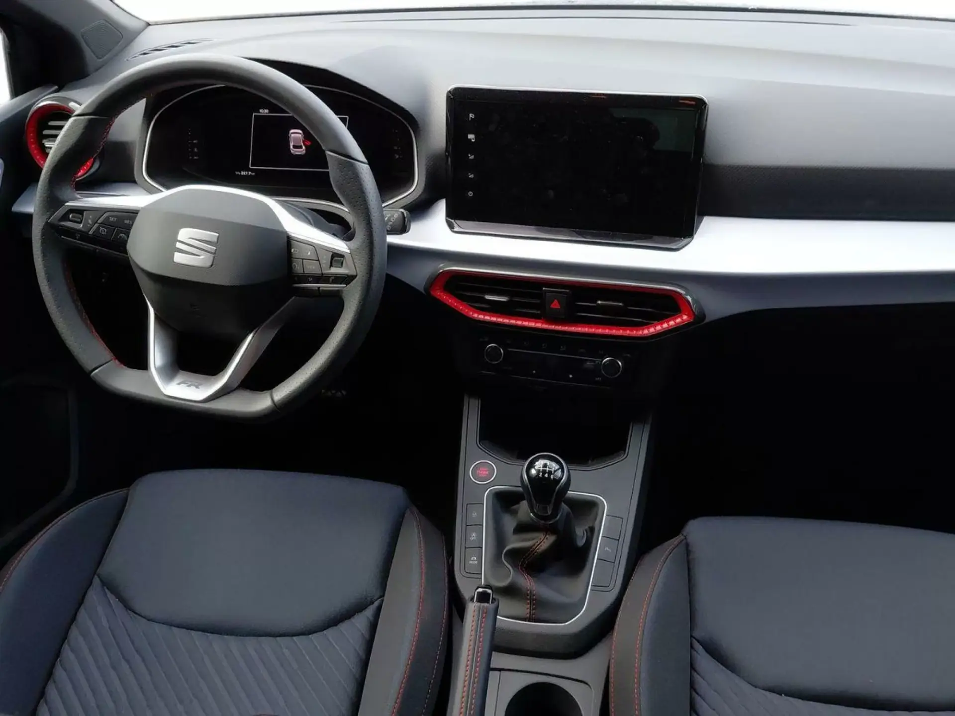 En el interior, el SEAT Ibiza se siente como un espacio diseñado para la comodidad y la funcionalidad. Con asientos deportivos tipo bucket y espacios de almacenamiento bien distribuidos, cada viaje se convierte en un placer. Además, cuenta con un techo interior en negro que añade un toque de sofisticación a su atmósfera deportiva.