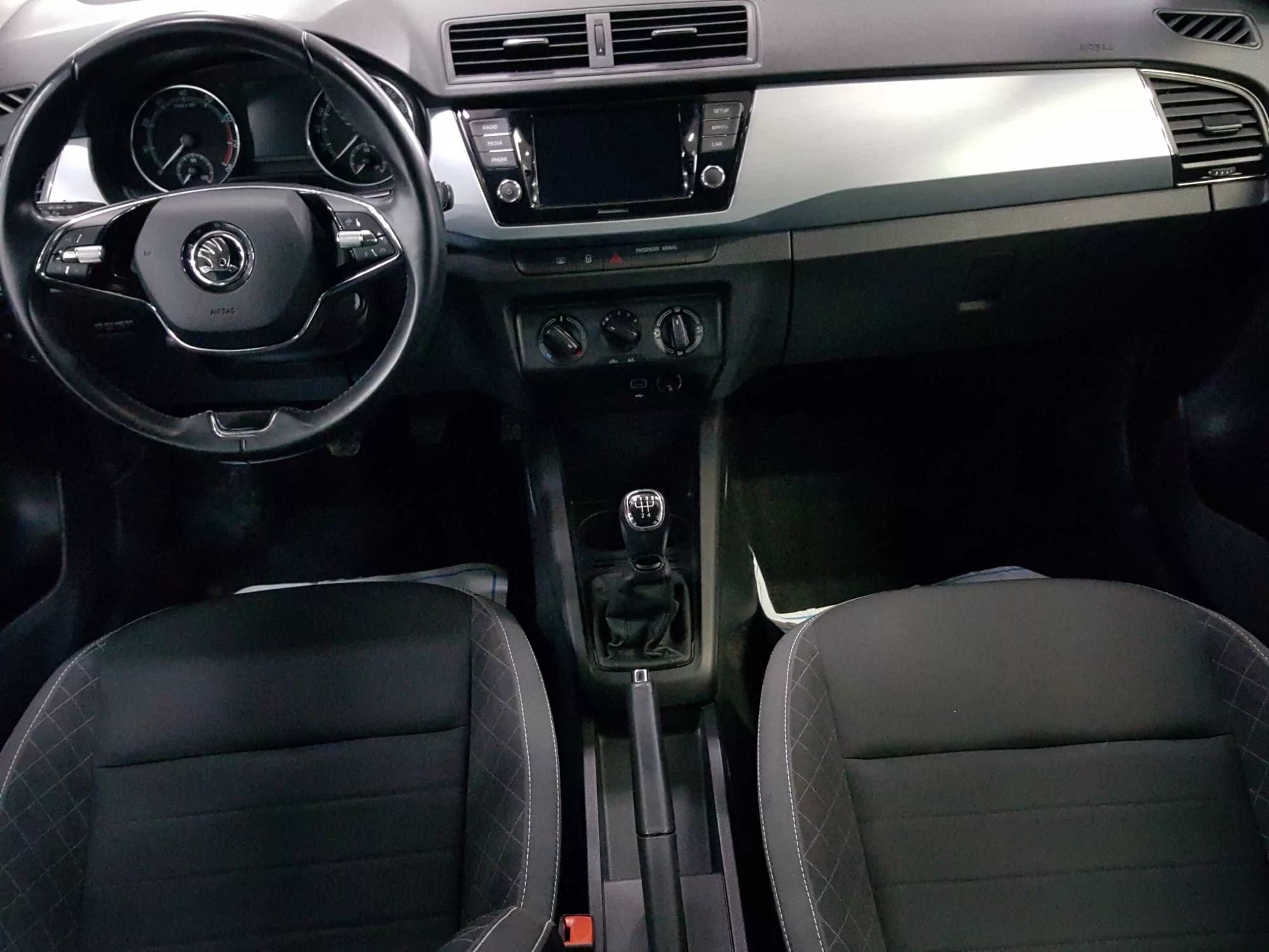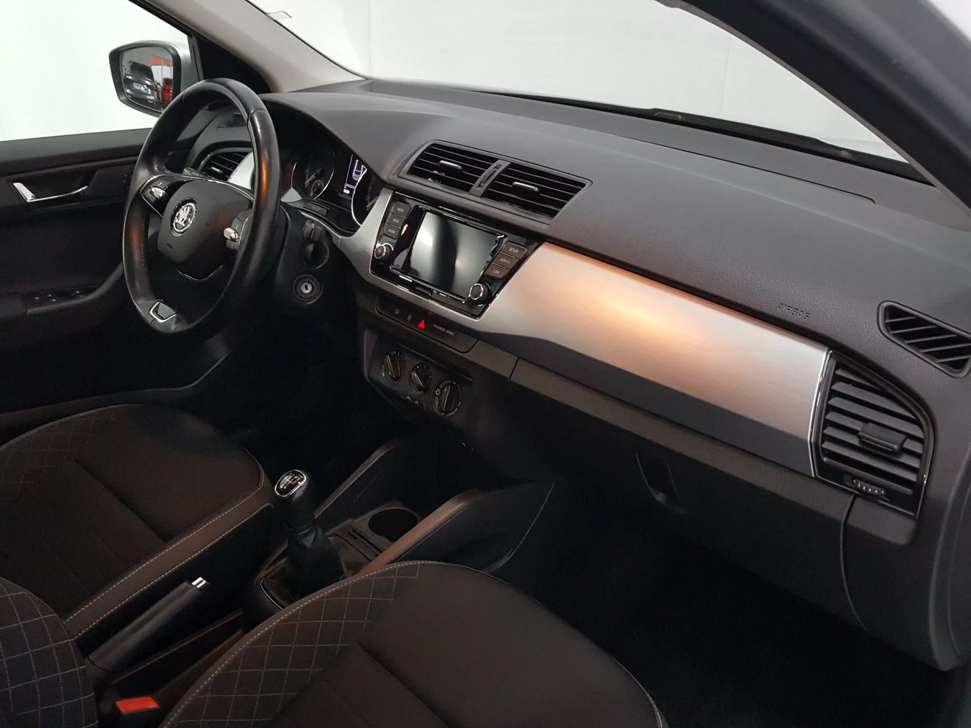 En el interior, el Skoda Fabia se presenta con un interior tipo Ambition Grey que crea un ambiente acogedor. Equipado con un volante de cuero multifuncional, el conductor puede manejar la radio y el teléfono con facilidad. Además, el sistema de sonido Arkamys 3D con 6 altavoces proporciona una experiencia auditiva enriquecedora mientras conduces por la ciudad.
