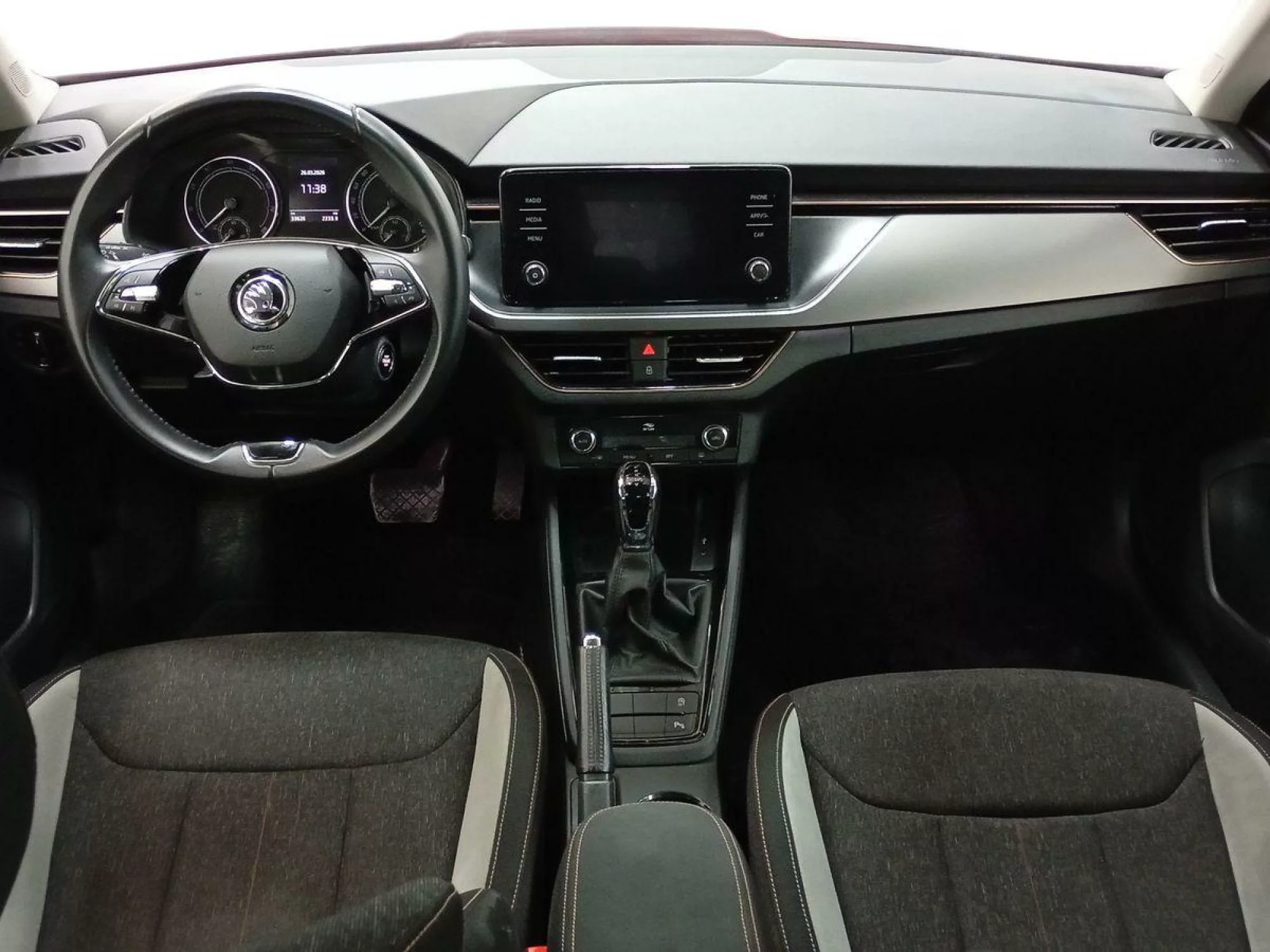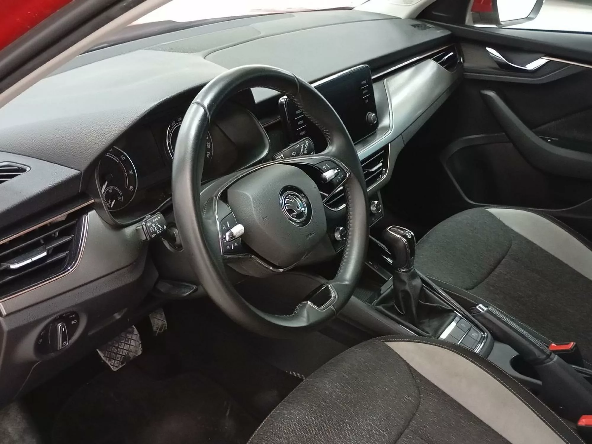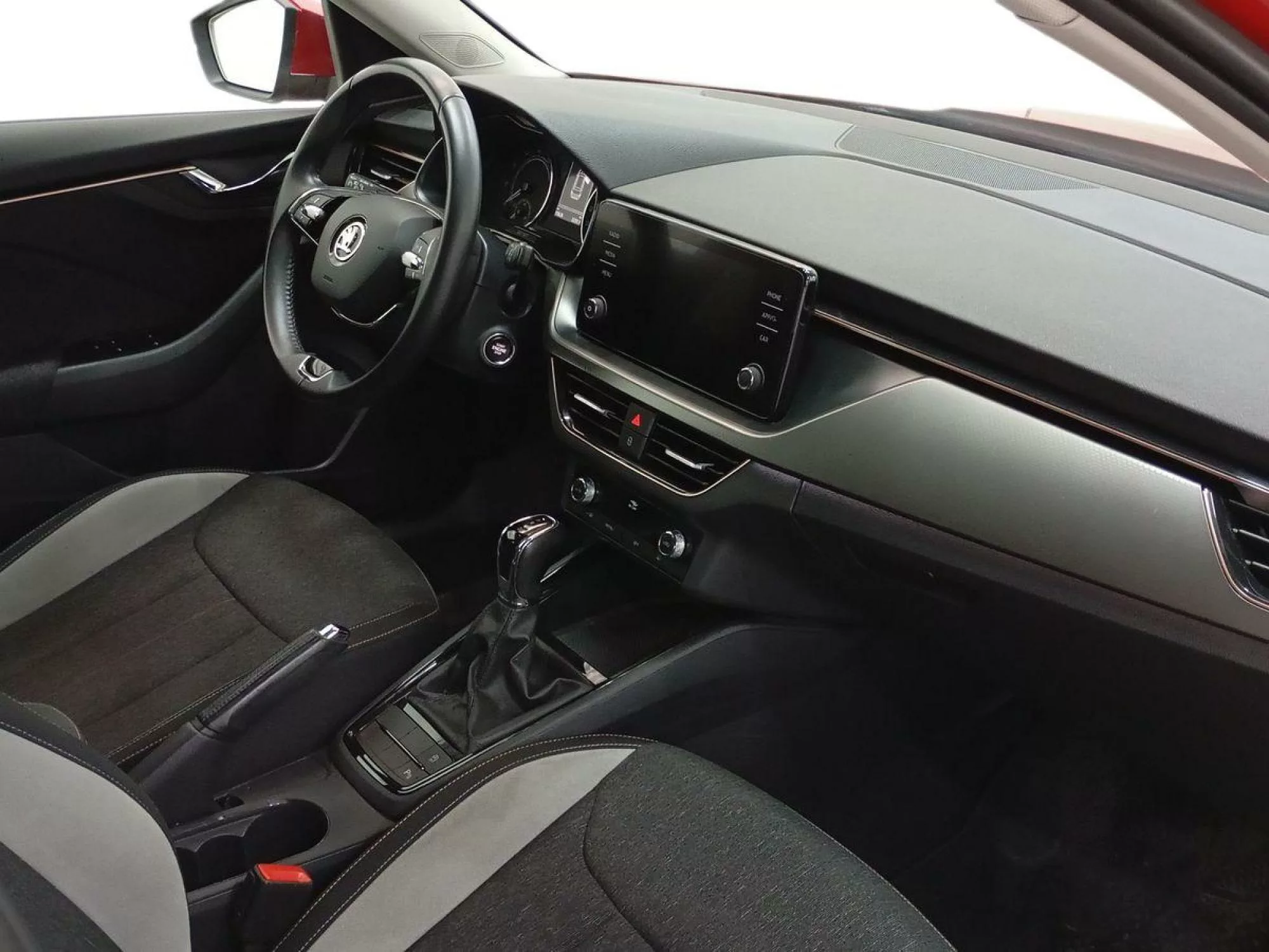 Al ingresar al Skoda Kamiq, los pasajeros se encuentran en un ambiente sofisticado y funcional. La tapicería de tela proporciona un tacto agradable, mientras que el climatizador Bizona asegura una temperatura agradable. Este SUV incluye un sistema de iluminación ambiental en blanco, que realza la atmósfera interior, y un reposabrazos delantero Jumbo Box que añade comodidad en los viajes largos.