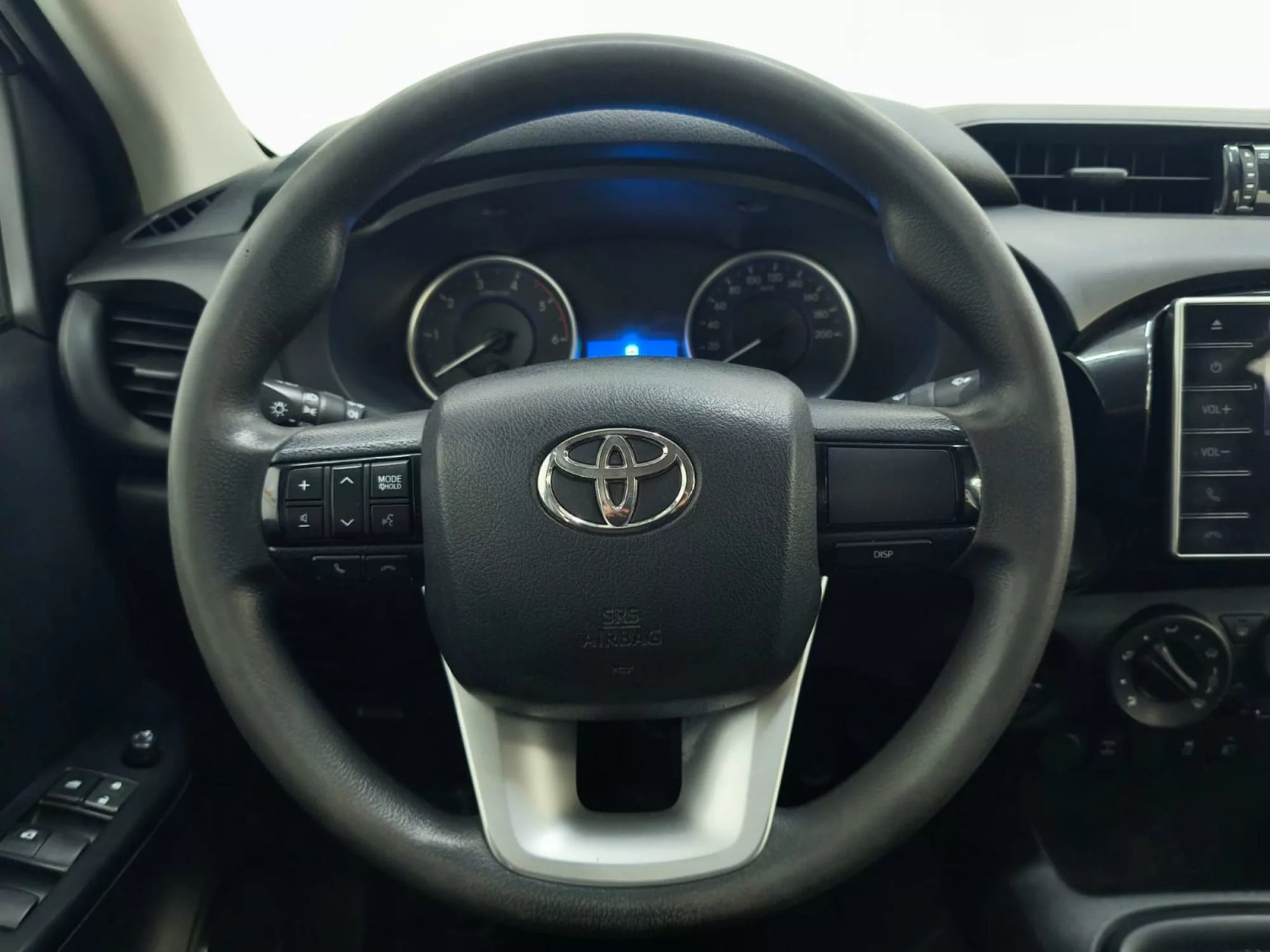 La cabina de la Toyota Hilux D-4D GX ha sido diseñada pensando en la comodidad. Con aire acondicionado, elevalunas eléctricos delanteros y un reposabrazos central de uretano con guantera, los largos viajes se vuelven una experiencia placentera. Además, el cierre centralizado y la iluminación interior temporizada añadirán ese toque de confort adicional.