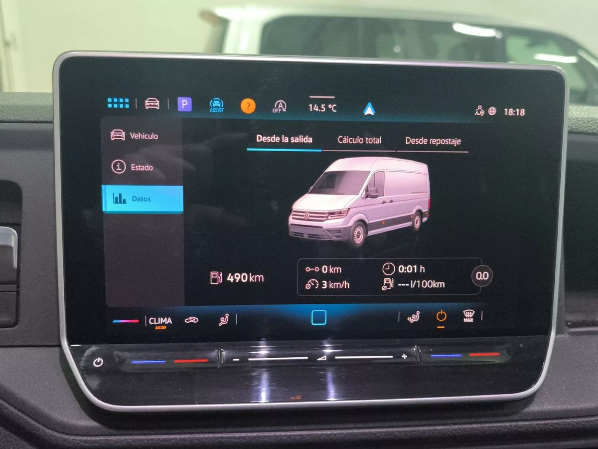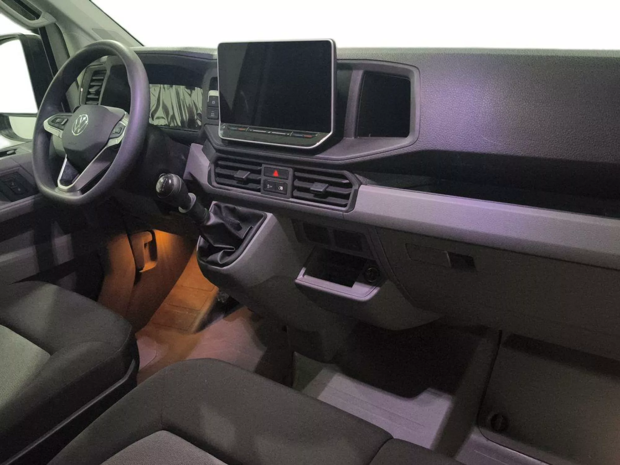 El interior del Volkswagen Crafter no escatima en tecnología ni en confort. Equipado con un **sistema Infotainment** que incluye una pantalla táctil a color de 26 cm (10,4") y **Digital Cockpit Pro**, cada viaje se transforma en una experiencia excepcional. El **climatizador con ajuste manual** y el **volante multifunción** añaden comodidad, haciendo de este vehículo un espacio acogedor para el conductor. El **sistema de control de presión de neumáticos** y el **asistente de arranque en pendiente** contribuyen a una experiencia de conducción más segura. De igual manera, la **ayuda de aparcamiento para la zona delantera y trasera** facilita las maniobras en espacios reducidos.