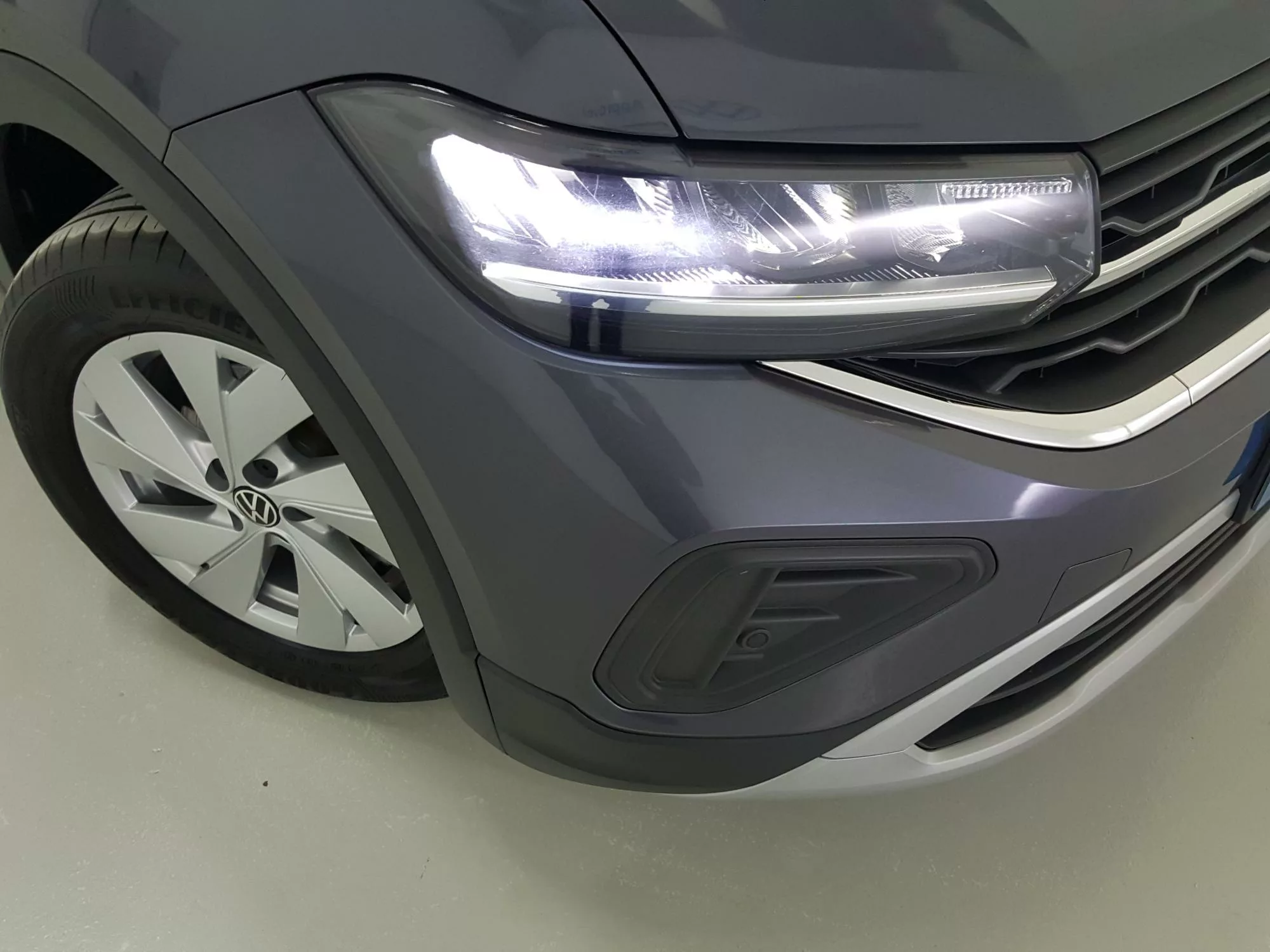 El T-Cross destaca por su pintura lisa y aerodinámica que no solo se ve bien, sino que también mejora su eficiencia en combustible. Sus faros LED con luz de conducción diurna ofrecen una visibilidad mejorada y un aspecto elegante. Además, las llantas Nottingham de 16 pulgadas con neumáticos 205/60 R16 no solo aseguran un rendimiento de conducción optimizado, sino que también realzan su presencia en la carretera.